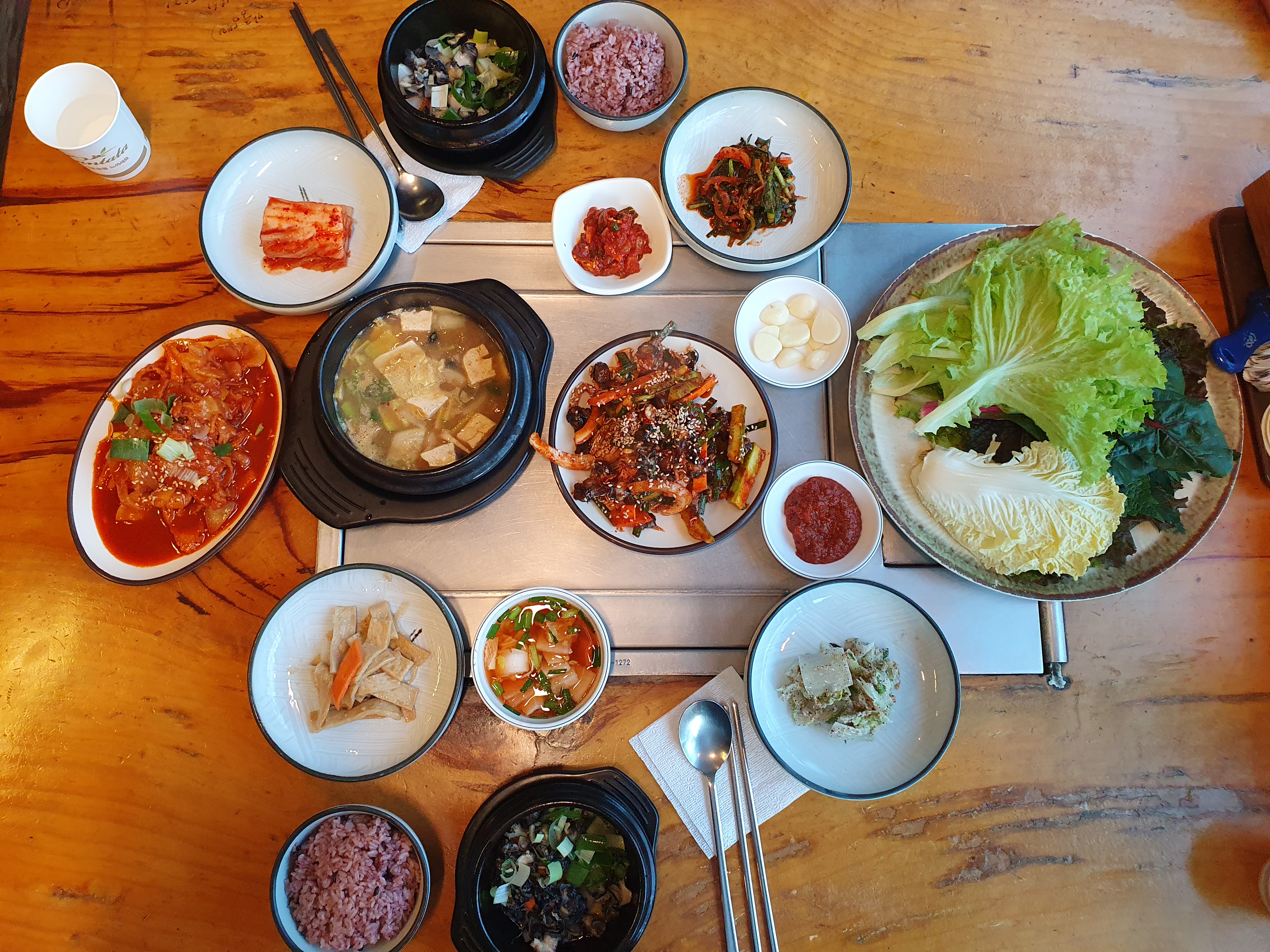 주문과 동시에 쌈과 반찬들이 하나하나 나오기 시작한다.
